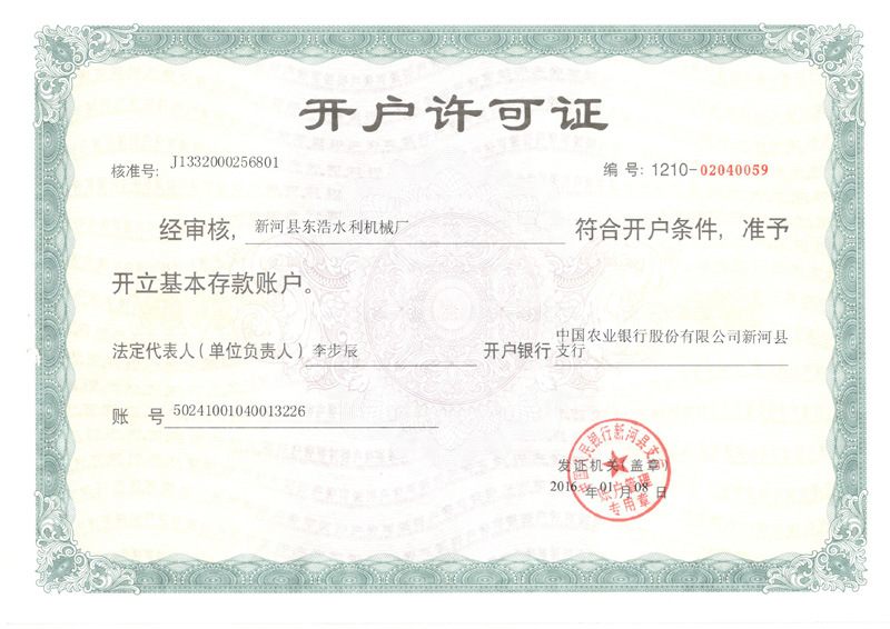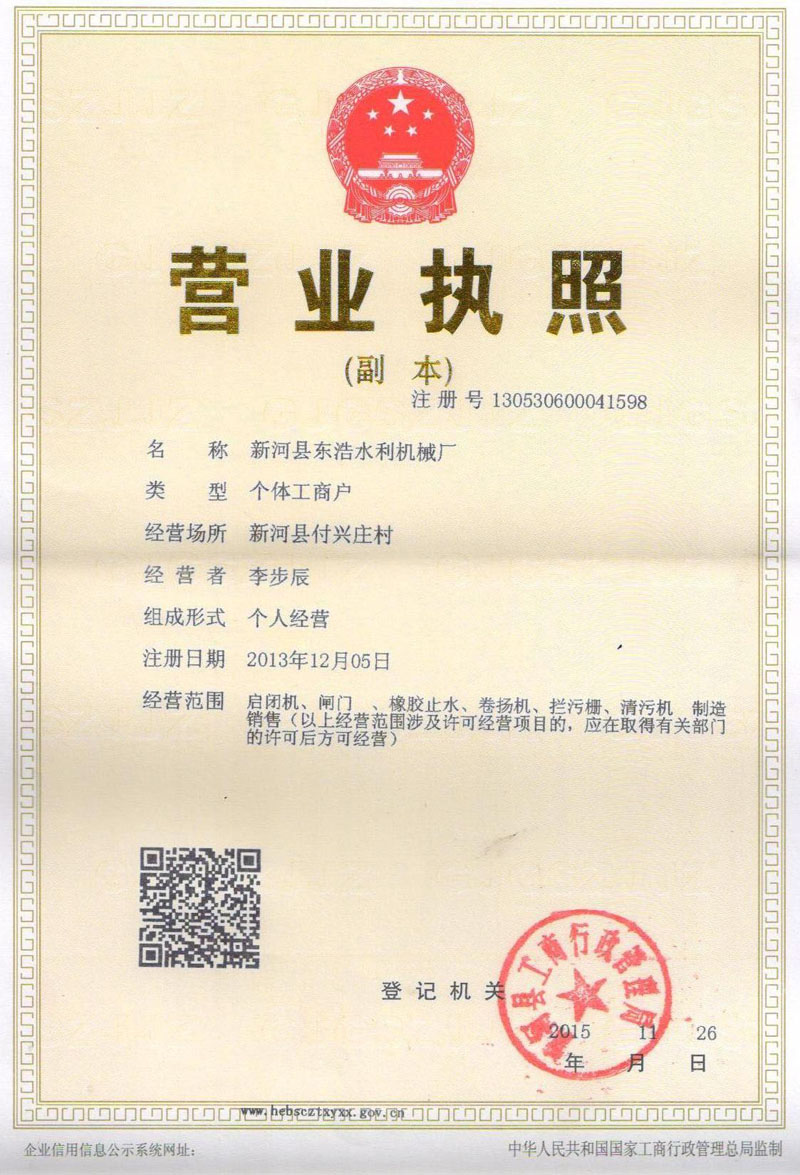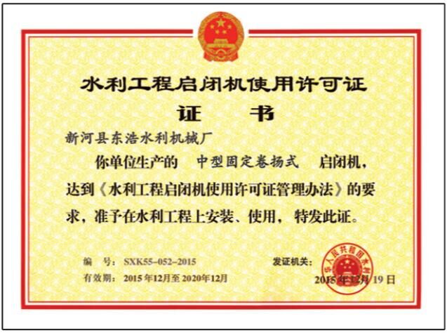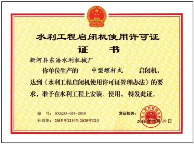 螺桿啟閉機使用許可證
